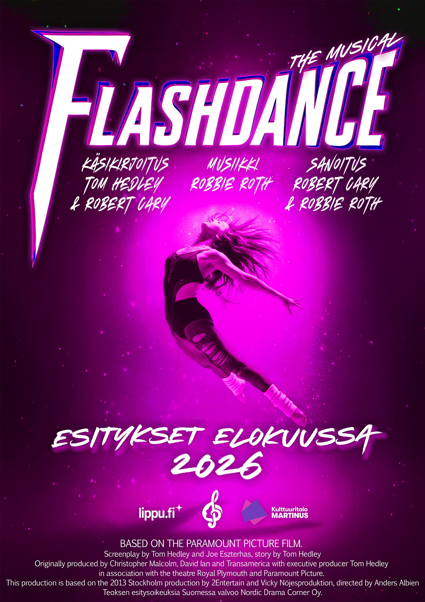 Elokuussa 2026 Kulttuuritalo Martinuksen lavalle saapuu yksi 1980-luvun ikonisin tarina – Flashdance. Musikaali perustuu vuoden 1983 elokuvaan, joka hurmasi aikanaan katsojat energiallaan, musiikillaan ja tarinallaan rohkeudesta seurata omia unelmia. Nyt tämä sähköistävä kertomus herää eloon uudessa tuotannossa, jossa yhdistyvät näyttävä tanssi, voimakas musiikki ja ajaton sanoma itsensä löytämisestä.